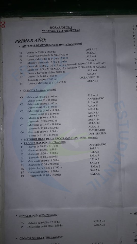 Horarios de Cursada 2do Cuatrimestre 2019